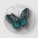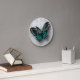 Horloge Ronde Papillon Turquoise Whimsical sur floral gris