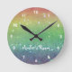Parties scintillant arc-en-ciel Horloge murale de l'enfant. La police des nombres et du texte est personnalisable. Personnalisez avec le nom de l'enfant.