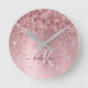Horloge Ronde Parties scintillant en métal brossé rose pâle Nom