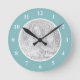 Personalized photo wall clock with your picture Round turquoise border frame with white numbers. Elegant design for your family or baby portret image. Cute vend idea for grandparents, grand-mère, grand-père, etc. Add your kids or grandchildren photo, newborn grandson or granddaughter.