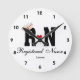 Horloge personnalisée pour une infirmière autorisée. Ce design présente le RN Initials et a un coeur grunge et un casquette d'infirmières. Super cadeau pour la journée des infirmières.