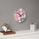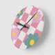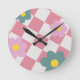 Horloge Ronde Pink Gingham Floral Pattern – Retro Cute Flower