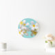 Horloge Ronde Plumeria blanche hawaïenne bleu fleur