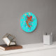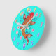 Un koi de style oriental orange, entouré de fleurs roses sur une horloge turquoise. Les numéros sont facultatifs.