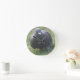 Cette horloge impressionnante comporte une photographie d'un pigeon sauvage rentré mon jardin arrière. L'oiseau picotait environ dans l'herbe recherchant la graine qui avait été frappée outre d'un conducteur d'oiseau. L'irisation des plumes est clairement évidente dans la photo.