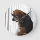 This portrait is a photo of a senior beagle making a silly, cute beagle face.