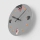 Une horloge frivole pour la volaille évente avec quatre portraits de poulet - deux têtes noires assorties de poules à gauche et à droite, une plus grande poule noire regardant vers le bas à partir du dessus, et une poule blanche du Sussex le fond. Les heures intermédiaires sont de petits oeufs. Un peu d'humour pour la cuisine :) cette version est avec un arrière - plan gris-foncé qui peut être changé utilisant le bouton de personnaliser et éditer.