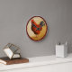Rhode Island Red Chicken Rooster debout dans l'herbe sèche par une chaude journée ensoleillée d'été. OEuvre d'art réaliste réalisée à partir d'une peinture à l'huile originale réalisée par l'équine et l'artiste de la faune Crista S.Forêt.