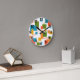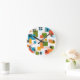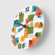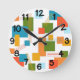 Cette horloge murale présente un design moderne du milieu du siècle de rectangles et lignes dans les couleurs des années 60.