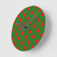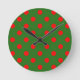 Horloge Ronde Red On Green Polka Dots Pattern Design