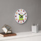 Une clock featuring à illustration of a retro green kitchen stove. Personalize with your name about illustration. Clock feobjets white numbers on orange and burgundy dots.