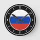 Russia Flag Elegant Round Clock with the Russia flag positioned in the middle and lovely white clock numbers on the clock edge. Delightful black background with the white oval element finalize the design putting emphasis on the elegance. Beautiful combination of black and white with the skillful integration of the national flag colors make this clock the perfect gift and the great show piece on the wall. © 2022 CountriesOfTheWorld