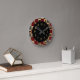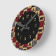 Rustic wall clock with a patchwork of red and black buffalo check alternating with patches of a wood plank design. Bears and pine trees are mixed into the pattern. Parfait pour une maison de montagne.