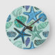 Horloge Ronde Shades Of Blue Seashells and d Starfish Pattern
