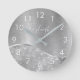 Easily personalize this silver brushed metal and glamorous faux glitter patterned wall clock with your own custom name