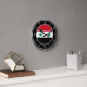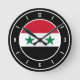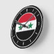 Syria Flag Elegant Round Clock with the Syria flag positioned in the middle and lovely white clock numbers on the clock edge. Delightful black background with the white oval element finalize the design putting emphasis on the elegance. Beautiful combination of black and white with the skillful integration of the national flag colors make this clock the perfect gift and the great show piece on the wall. © 2022 CountriesOfTheWorld