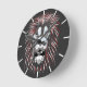 Graphic desin of a tribal lion face with a footprint mark on its face, était un style painting. Round Clock for wildlife and lion lovers.