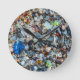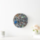 Horloge murale avec un mélange coloré de bleu étincelant, vert, orange et de verre de mer clair sur une rive sablonneuse. Décor amusant pour une maison de plage ou un amoureux de la plage. Photo prise à la célèbre Glass Beach, Fort Bragg, Californie.