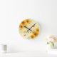 Horloge Ronde Yellow tournesol abeilles rustique script monogram