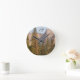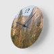 Scenic wall clock with photo of tall pines and Yosemite Falls.
