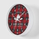 Une horloge murale rustique de campagne élégante, avec votre nom et "Lake House", Cabine, Ranch ou autre texte ainsi que sa date et son emplacement établis si désiré. Ce design personnalisé et unique présente un charmant texte rustique de style campagnard avec une silhouette blanche de pins avec des barques ou des pagaies sur un imprimé classique de plaid de buffle rouge. Idéal pour vos vacances de noël ou à tout moment de l'année. Pour voir d'autres modèles comme celui-ci, veuillez visiter ma boutique ici à "Zazzle.com/Store/Rustic_Charm". Merci .