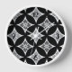 Traditional Japanese Shippo, ou "seven treasures" patterned clock of interlocking circles with a central flower motif - motifs - motifs de tomy of gray / grey with a black and white patterned background