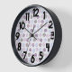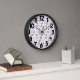 Cette pendule murale a un design art déco de spirales dans les tons violets, bleu clair et marron, sur un champ de blanc. Si vous voulez le même design avec des couleurs différentes, envoyez-moi un message.