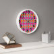 Cette horloge murale a un design géométrique fait de Ls dans différentes directions se répétant à travers le design.