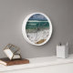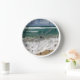 Cette horloge murale offre un paysage marin et une vue sur l'océan Atlantique depuis Juno Beach, en Floride. Les vagues roulent sur le sable, jusqu'aux orteils, avec un ciel bleu au-dessus, rempli de nuages blancs bouffants.