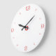 Une horloge murale de cuisine blanche très simple avec des chiffres rouges en police géométrique x.