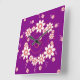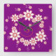 De jolies horloges murales qui arborent un motif de tourbillons et de fleurs roses sur un arrière - plan violet. Ces mignonnes horloges customisées ont 2 formes - carré et rond- et auraient l'air adorable dans la chambre d'une fille.
