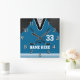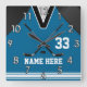 Horloges murales faites sur commande d'hockey votre NOM et NOMBRE et vos COULEURS. Saisissez le nom de chaque joueur de hockey et son nombre du Jersey ou supprimez le texte provisoire l'un des. Changez les couleurs bleues et blanches d'arrière - plan en vos couleurs de décor ou d'équipe de hockey de pièce d'hockey ou APPELEZ Linda pour l'AIDE : 239-949-9090