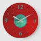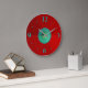 Une horloge unie rouge/tan avec un centre cercle aqua vert bleu. Couleurs complémentaires qui comprennent des chiffres pour correspondre. Disponible en formes carrées et rondes.