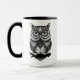 Ornately illustrated graphic horned owl by Deb Soromenho.
