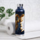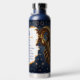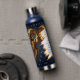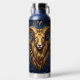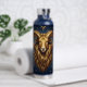 A mystical golden Ram Aries Astrology sign water bottle with Aries dates and traits on the back, along with compatibility and other fun Aries facts.