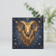 A mystical golden Ram Aries Astrology sign note card with Aries traits on the back.