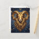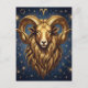 A mystical golden Ram Aries Astrology sign postcard with a metallic gold ram and a mystical starry night background.