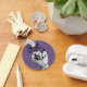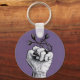 Witchy hand keychain with an ink drawing depicting a hand in fist with sharp black fingernails and a black ring with evil monsters with sharp teeth over purple background. Fun creepy creepy illustration with a gothic feel.