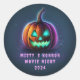 Make your horror movie night unforgettable with this neon jack-o'-lantern sticker! Perfect for sealing party favours, this customizable sticker adds a spooky touch to your event keepsakes.
