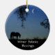 A beautiful Christmas ornament of a horse and crescent moon with Winter Solstice Blessings on it. A surreal fantasy holiday ornament.
