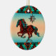 Personalize this "One of a Kind" Southwest Horse Christmas Ornament! It Features a Southwest Horse Galloping Under the Sun on a Turquoise and Orange Sunset Background...Surrounded by Turquoise, Orange and Black Borders!
