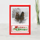 Wonderful image of two beautiful horses bay draught horses in a snowy forest. Design in red, black & white. Space inside so you can use our message or a custom message and family name of your own.