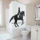 Add your own initial (or delete altogether) then make this shower curtain match your bathroom decor perfectly by clicking "Customize" and selecting whatever background colour you want. To drill deeper than the offered background colours, simply click on "Show Colour Picker" where you can select colours from a chart or enter a specific Hex colour number. The graphic depicts a dressage horse and rider (in shadbelly and tophat) doing a pirouette and it will add  the perfect touch to any dressage/equestrian themed space.