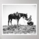 Horse eating from a cowboy's hat. poster