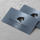 Horse Equine Logo Equestrian Modern Dusty Blue Metallic Business Cards.