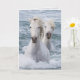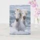 Two white Camargue horses swim together toward shore in southern France.There is an additional image of the horses inside the card. All images are by Carol Walker and copyright Living Images by Carol Walker.