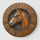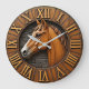 horse head wooden sculpture rustic carved wood design, equestrian themed timepiece, farmhouse wall art, western home accessory, horse lover gift, stable decor clock, vintage animal clock