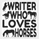 This adorable text design featuring the phrase "Writer Who Loves Horses" and cute horse profiles is perfect for any writer who loves horses.