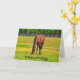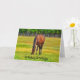 This charming card showcases my original artwork, which is my photograph of a bay horse in a Texas pasture munching on new Spring grass.The front of the card states, "Birthday Greetings!" and the inside of the card states "Hope your day is relaxed and