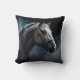 Horse on a black backgroung with blue tints throw pillow